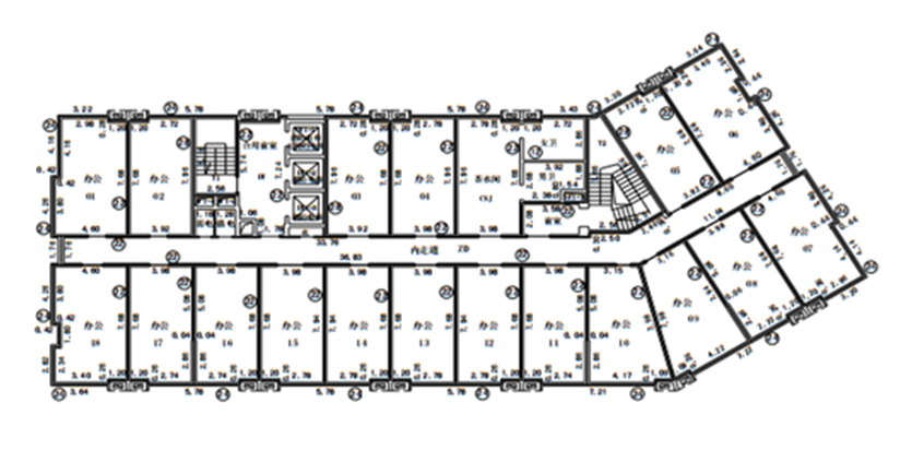 2、公共服务中心1号楼总建筑面积为17355.83平方米,地上总层数为19层,首层层高为6米,二层以上层高为4.2米,标准层为49-60平方米分户小单元,但套内不含分户水电,层单元设置公共洗手间,其中3-11层已整体出租。本次招租范围为公共服务中心1号楼12-19层,建筑面积为7556.13平方米。